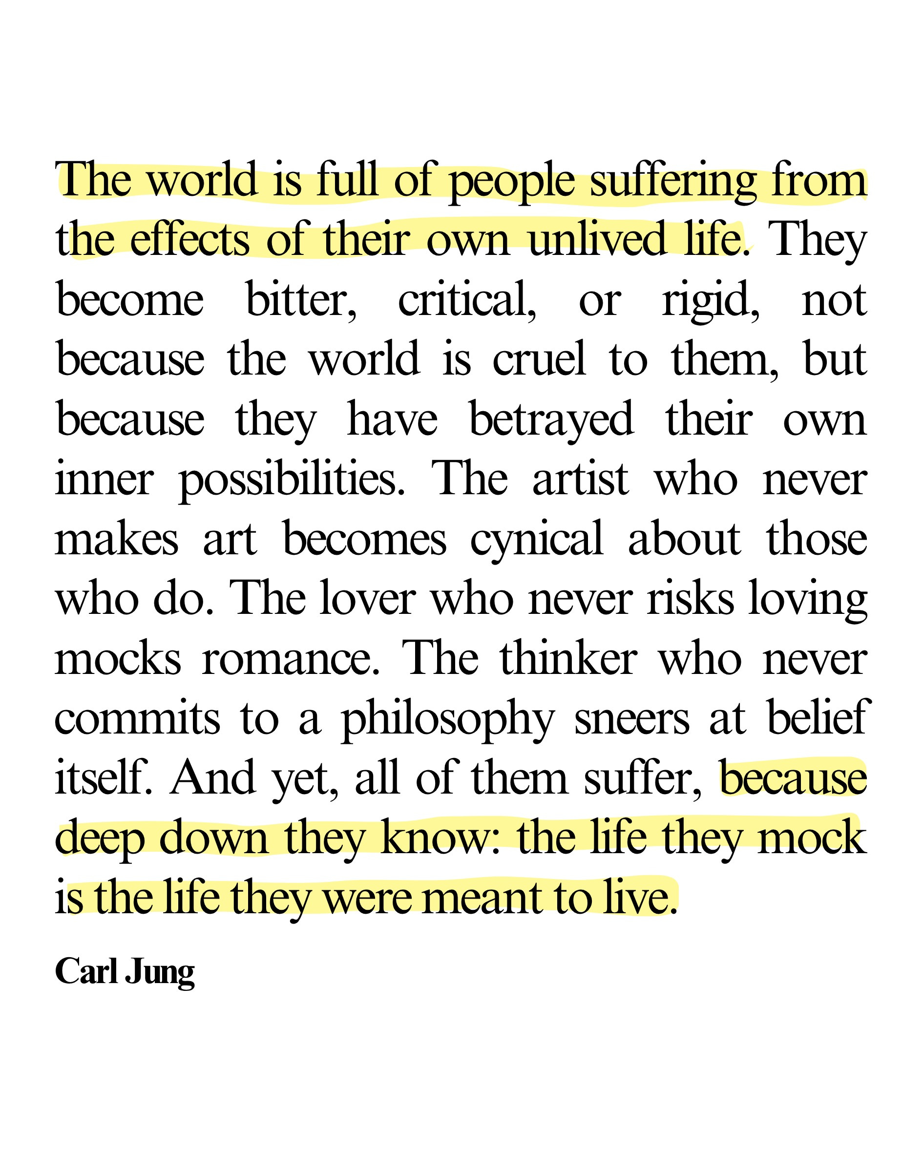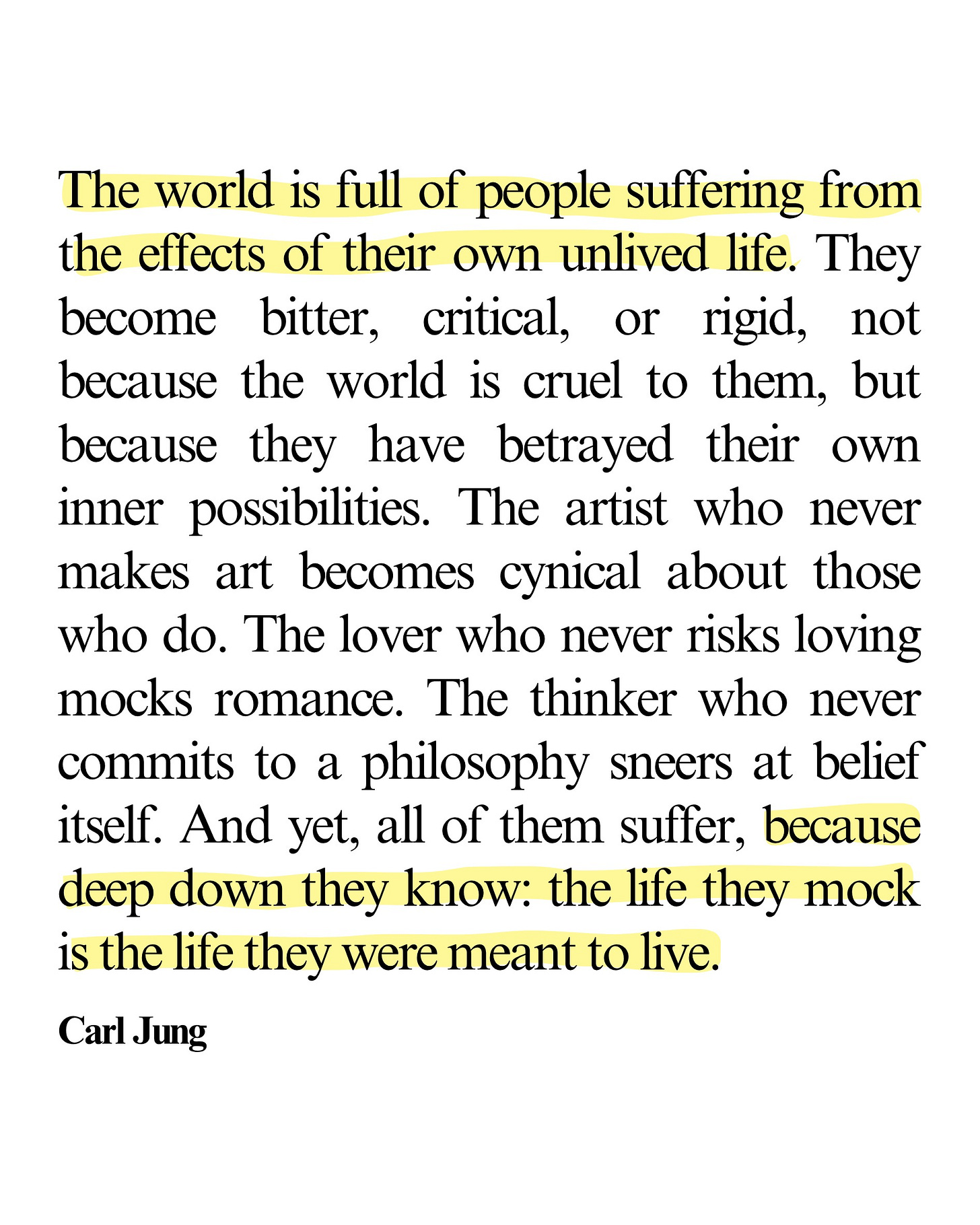 This is why I think Jung’s work on the archetypes is so valuable. It’s a reminder to all of us that everyone has similar struggles beneath the surface. We each contain a multitude of characters (Read: my piece on Jung’s 8 archetypes inside our mind). There’s the Hero who wants to individuate, the Child who feels vulnerable, the Shadow of repressed feelings, the Persona we polish for others.